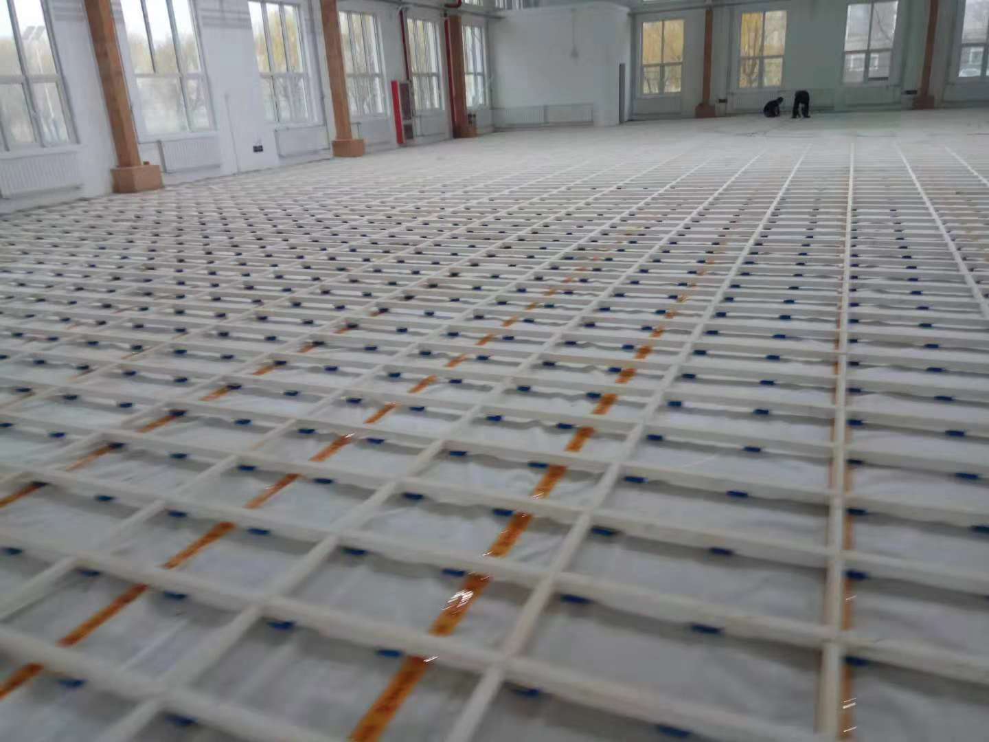 結構介紹:主副龍骨結構是一套懸浮式運動地面系統,具備優良的運動彈性、均勻吸震性、耐用維護簡單等特點,并克服了實木地板因單體收縮龍骨容易旋轉變形的不足,具有良好的穩定性,滿足DIN對各項運動的性能要求,是籃球場地的專業結構之一。