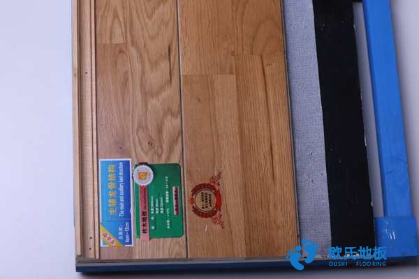 鋪裝好的木地板層表面,2m*尺測量,間隙不大于2mm;場地整體平整,在場地上任意選取間距15m的兩點,用水準儀測量標高,其標高差值不大于15mm。涂層的顏色不影響賽場區劃線的辨認,反光不影響運動員的發揮,具有耐磨、防滑、難燃的特性。體育地板結構要有通風設施,要有良好的通風作用,布置合理,不可設在比賽區域內,其顏色和面層相同或相近。面層要采取防變形措施,避免地板因外界環境變化而發生影響正常使用的起翹、下凹等各種變形。場地規格、預埋件、標志塊和標志線要與場地的功能要求一致并符合相應運動項目的要求。運動木地板場地的結構由彈性墊層或彈性結構層、彎曲剛性強的載荷分布層(龍骨或毛地板)、面層(面層地板)三層構成。