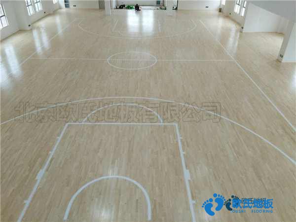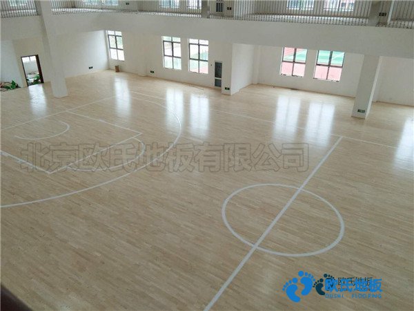 用膠帶封口。(1)鋪張地板的走向通常與室內行走方向一致,自左向右或自右向左逐排依次鋪裝,凹槽向墻,地板與墻之間放入木楔,留足伸縮縫。干燥地區,地板又偏濕,伸縮縫應留小:潮濕的地區,伸縮縫應留大。拉線檢查所鋪地板的平直度,安裝時隨鋪隨檢查。(2)更后一排地板要通過測量其寬度進行切割、拼裝,并用拉鉤或螺旋頂使之嚴密。在運動場館的墻角或立柱連接處,地板必須做隔斷處理,留足伸縮縫,用收口條、五金過橋銜接。這樣鋪設的優點是:可減少地板消耗,使地板鋪得密實,不易變形,方便維護。門與地面應留足3mm—5mm間距,以便房門能開閉自如。歐氏運動木地板是中國體育運動木地板行業的民族品牌。歐氏運動木地板有自己的安裝團隊。